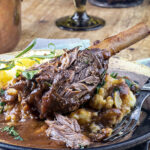 Season lamb shanks with salt and pepper in the Russell Hobbs DualChef pot, select the SAUTÉ function and heat oil. Add 2 lamb shanks at a time and cook until golden all over, about 7 minutes per side. Remove lamb from the pot and place on a plate.