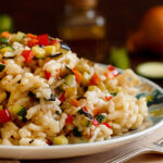 Plate the risotto into a heated serving dish and sprinkle the remaining cheese. Garnish with the parsley.